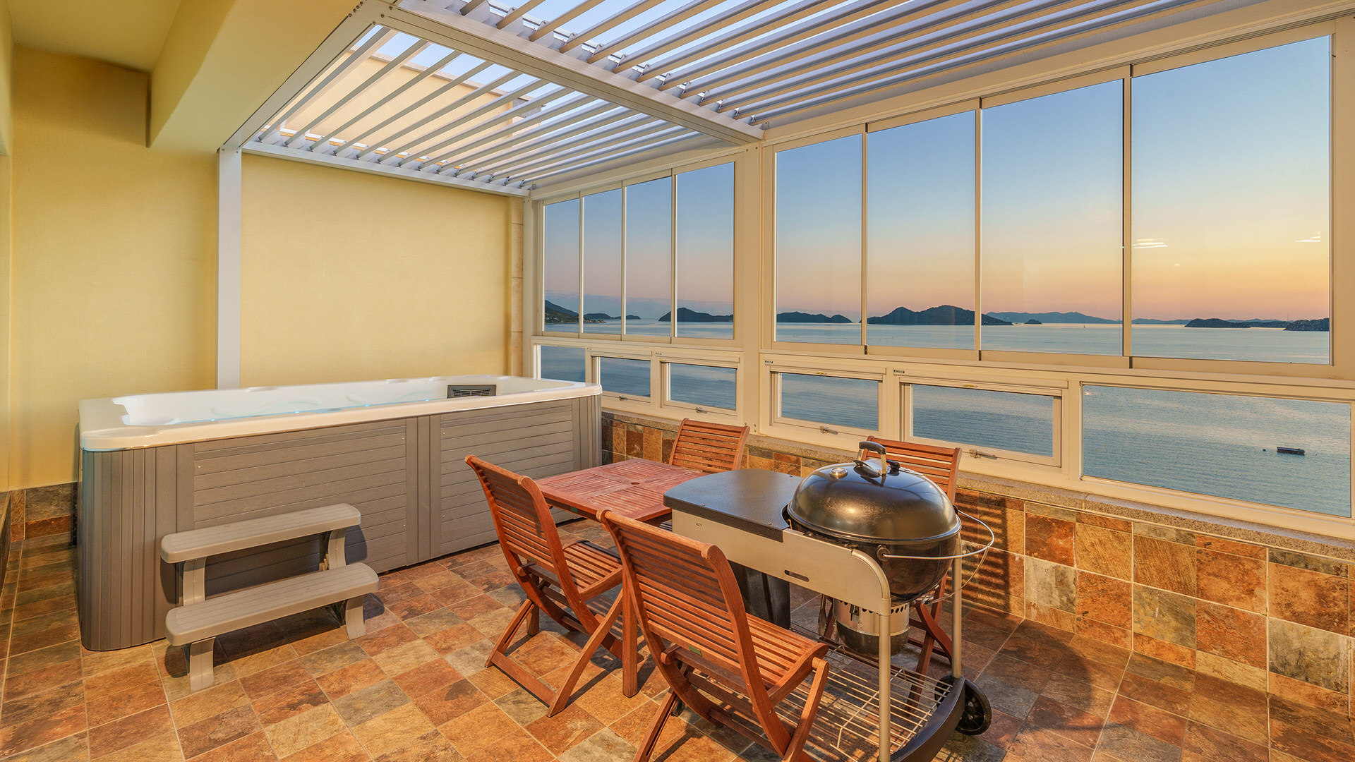 - 집기품목 : 욕실용품, 남녀공용, TV, 금연, 냉장고, 에어컨, 전기밥솥, 취사시설/도구, 인덕션, 개별바비큐, 드라이기, 식탁, 전자레인지, 커피포트, VOD, 일산화탄소 감지기, 화재 감지기, 스파/월풀, 바다전망